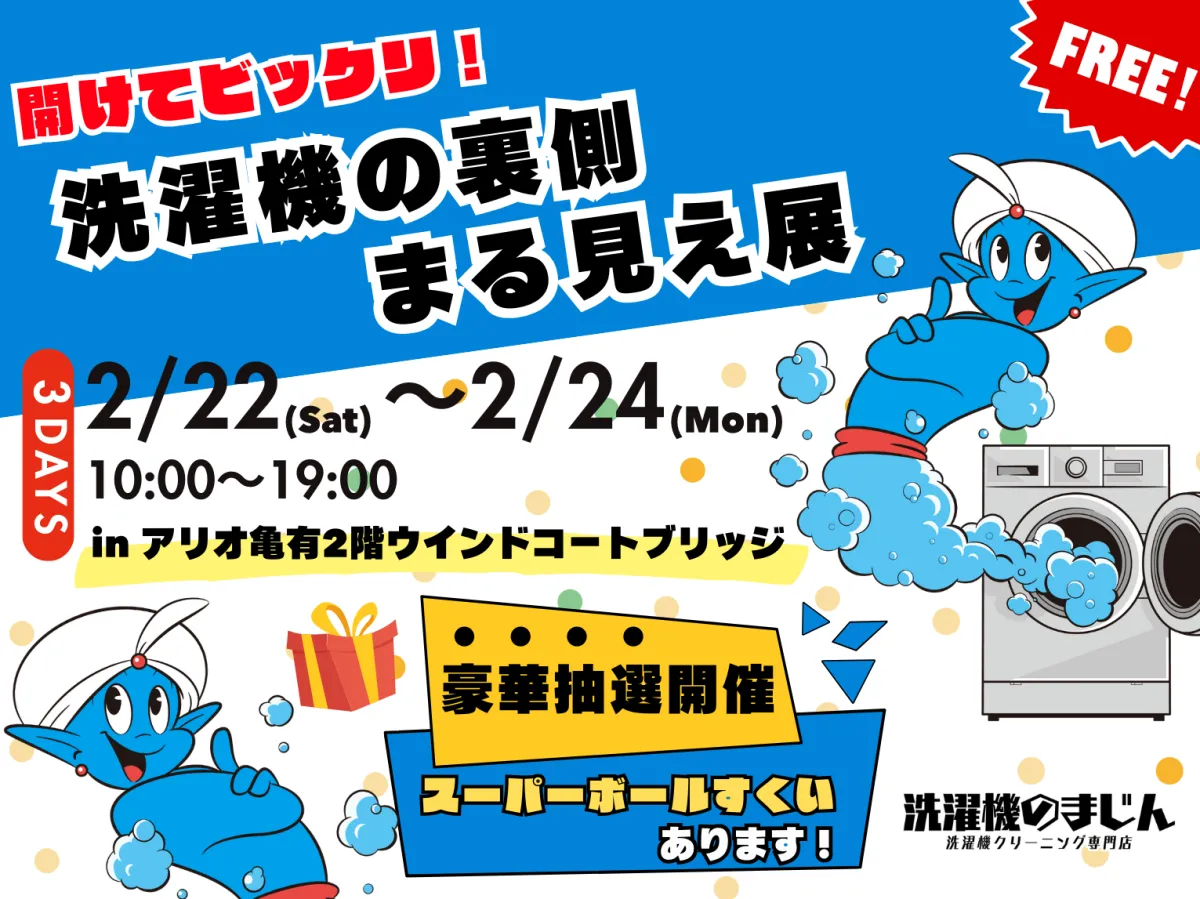 普段は見えない洗濯機の内部。実はその汚れはトイレよりもひどいと言われています。そんな衝撃的な事実を伝え、洗濯機クリーニングの重要性を再認識させるイベント「開けてビックリ!洗濯機の裏側まる見え展」が、2025年2月22日から24日までの3日間、アリオ亀有にて開催されます。
