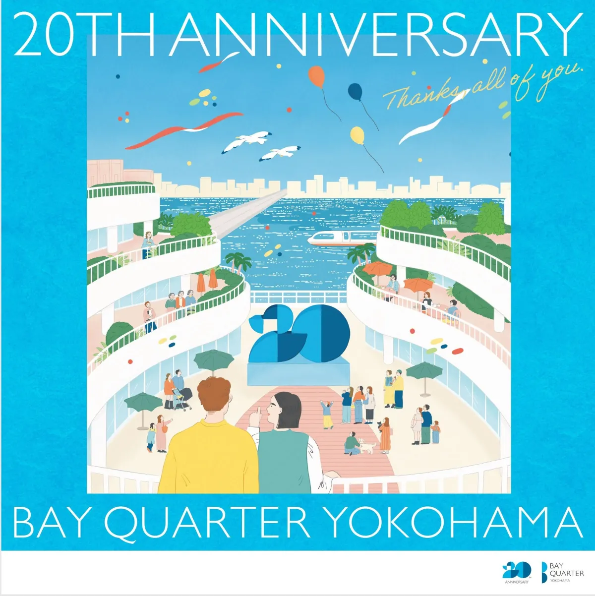 横浜ベイクォーターが2026年8月に20周年を迎えることを祝し、様々な特別企画を用意しています。横浜ダイヤビルマネジメント株式会社が管理運営するこのショッピングモールは、2006年に開業以来、横浜ポートサイド地区で地域と共に育ってきました。毎年1000万人以上のお客様に利用されてきたこの場所は、日常の「おとなり」として、くつろぎと楽しさを提供してきたことに感謝の意を表します。