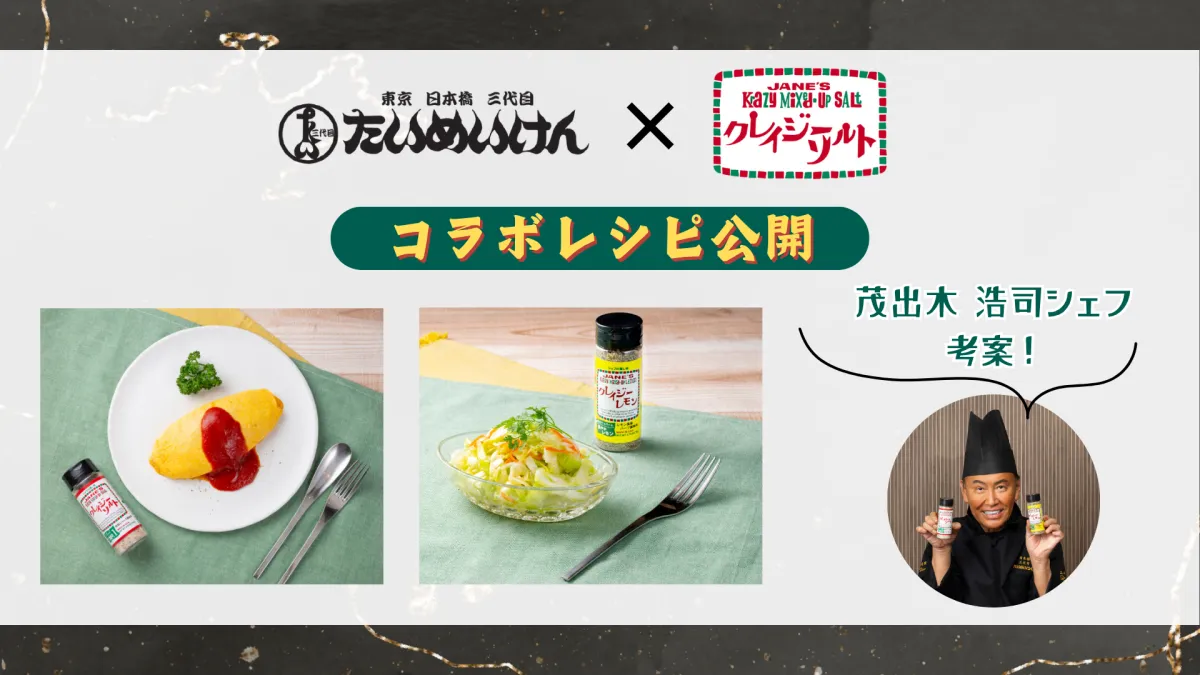 「三代目 たいめいけん」の茂出木浩司シェフは、このコラボに対して強い期待を寄せており、『クレイジーソルト』のスパイスと岩塩が、これまでのオムライスの味わいを新たな次元へと引き上げると語ります。具体的には、オムライスの味付けはこのスパイスとケチャップだけで完結し、複雑な調味料を使わずに深い味わいを楽しむことができます。また、コールスローサラダは『クレイジーレモン』が加わることで、酸味と風味が絶妙に絡み合い、従来のサラダとは一線を画す上品な一品となっています。