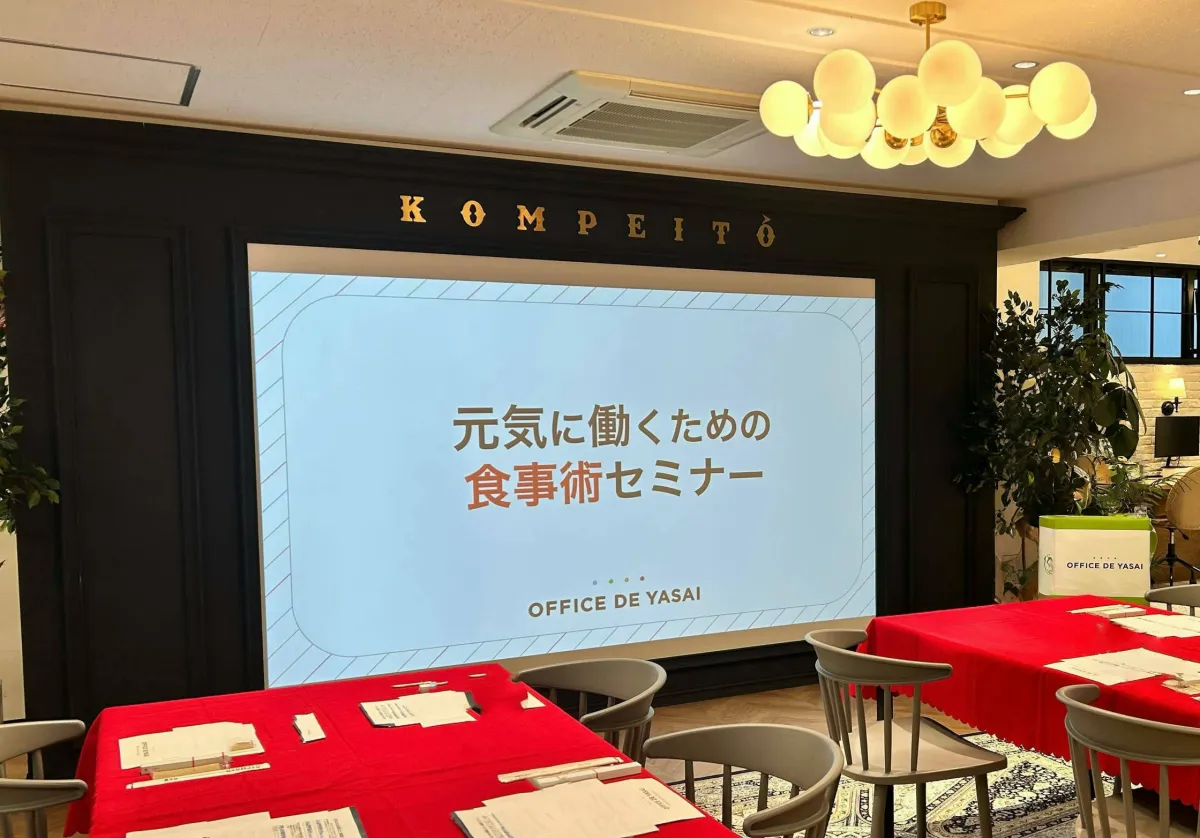 株式会社KOMPEITOが運営する“設置型健康社食®”サービス「オフィスで野菜」は、2025年3月6日(木)に五反田本社で「元気に働くための食事術セミナー」をオフラインで開催しました。このセミナーは、導入企業の総務や人事担当者向けに、従業員の健康を維持・向上させるための食事に関して、専門の管理栄養士が取り組みを紹介しました。