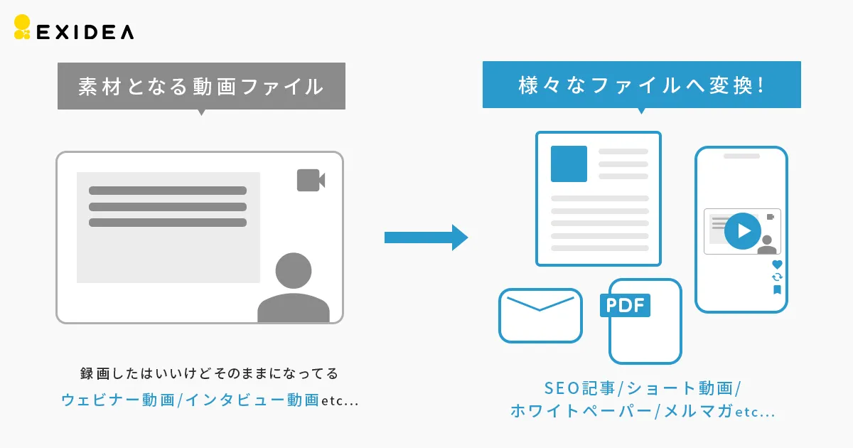 『ReVolt』は、企業がコンテンツを最大限に活用できるよう設計されたSaaSサービスです。特に、SEO対策にも対応した記事やインタビュー記事、セミナー録画などのコンテンツを、様々なメディア形式で自動生成することができます。この機能により、SNS投稿やショート動画といった複数のチャネルで、一貫したブランドメッセージを発信することが可能になりました。