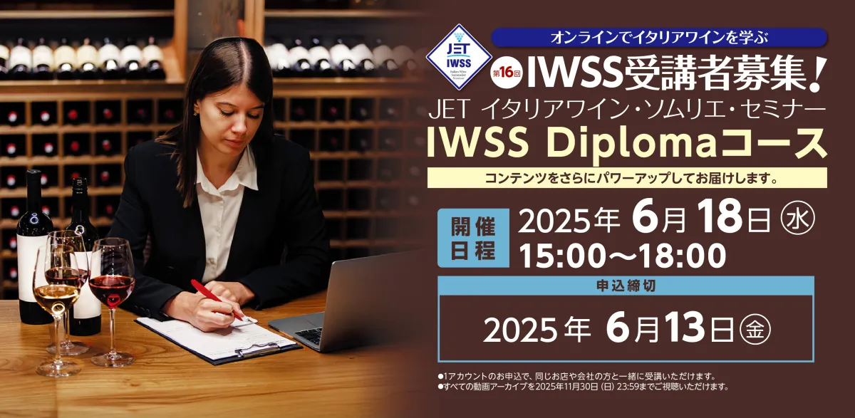 日欧商事株式会社から、イタリアワインに特化したオンラインセミナー「IWSS Diplomaコース」が2025年4月より開催されます。このコースでは、全10回にわたり、イタリアワインの基礎から最新のトレンドまでを深く学ぶことができ、自宅にいながら知識を深めることができます。
