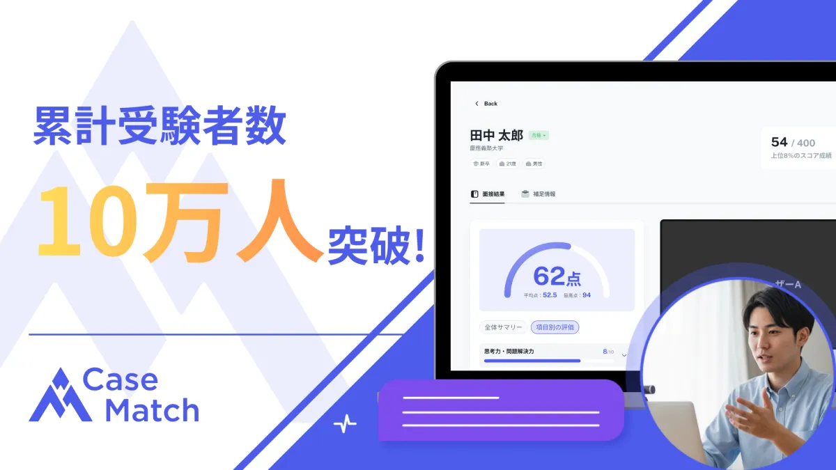 株式会社アズユニが提供するAI面接サービス「CaseMatch」は、先日累計受験者数が10万人を突破しました。これにより、多くの企業や候補者から支持されていることがわかります。その背景にある技術と特徴について詳しく探っていきましょう。