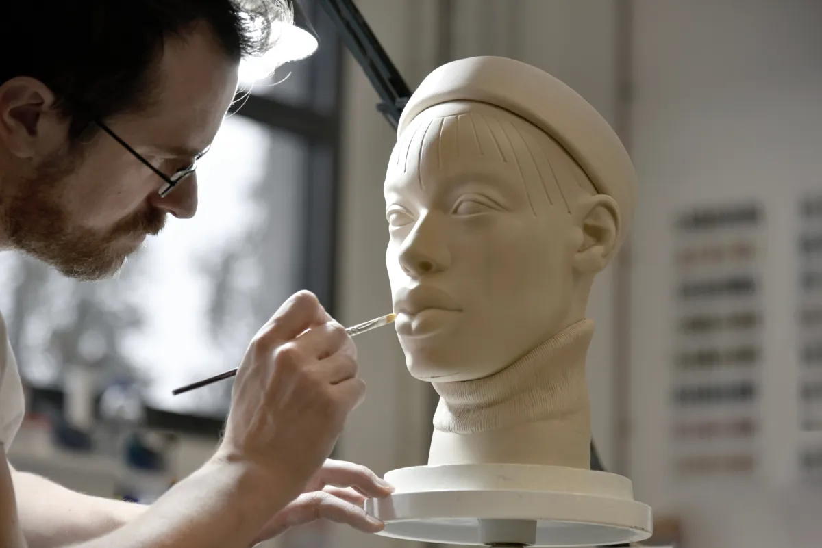 「TOUKI」の制作は容易なプロセスではありませんでした。ベルナルドの工房が誇る磁器技術を駆使し、造形から彫刻、彩色まですべての技術が要求されました。特に、フランス磁器の源ともなる素焼き技術へのオマージュが作品に反映されています。オマーが描くキャラクターを生き生きとさせるため、モデラーは高度な専門知識を駆使しました。