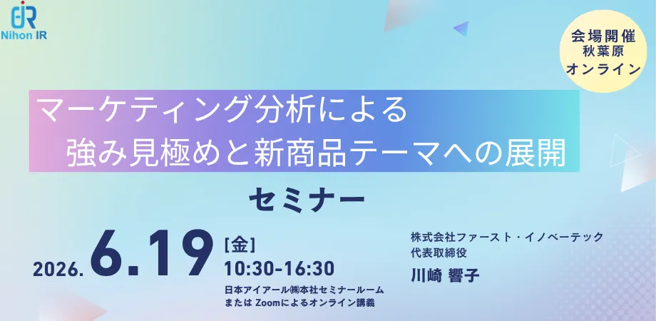 - - 形式: 会場受講(日本アイアール本社)またはオンライン(Zoom)
