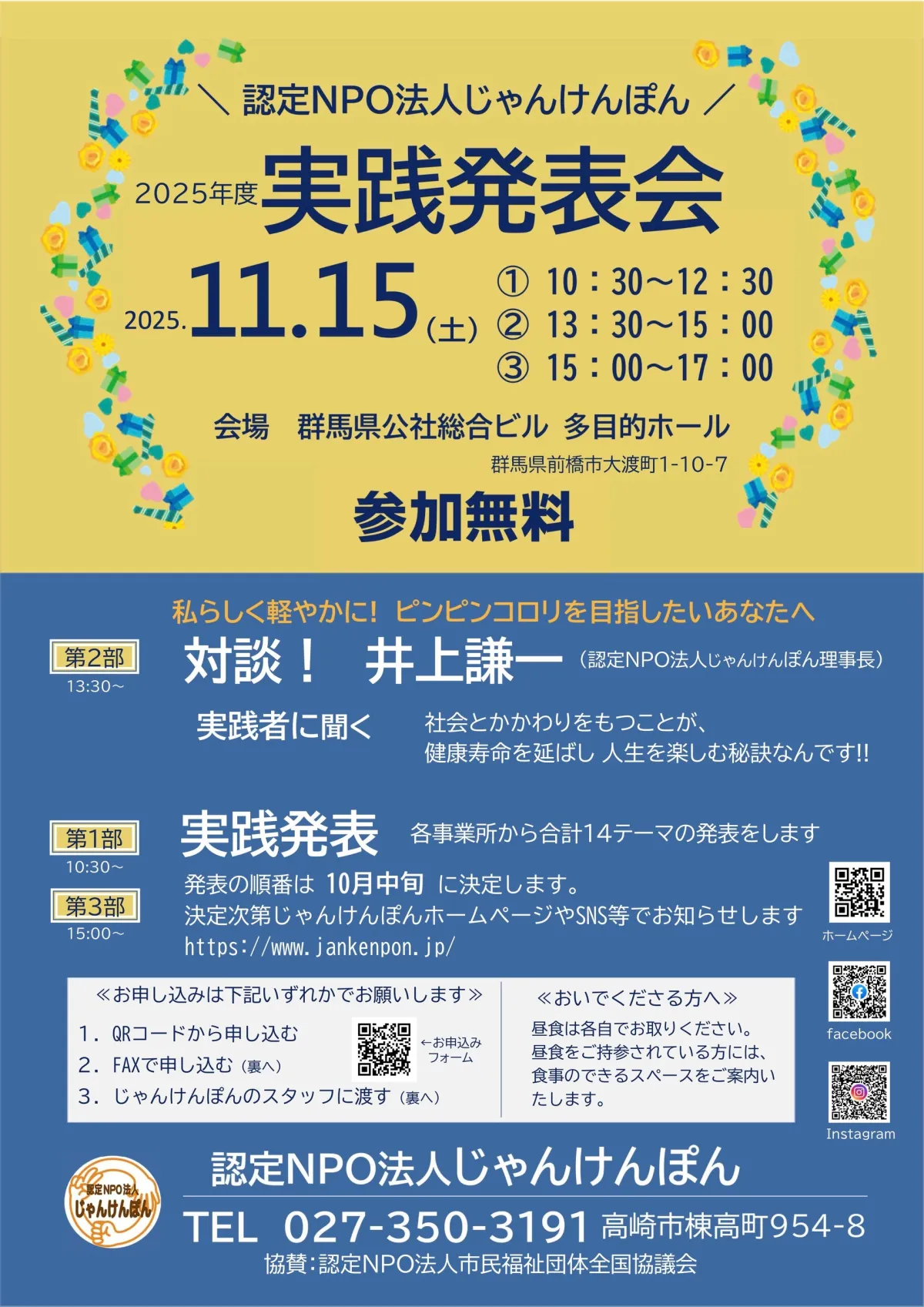 2025年11月15日、群馬県前橋市にて「認定NPO法人じゃんけんぽん」主催の実践発表会が行われます。このイベントは、シニア世代が元気で豊かな生活を送る方法と地域共生社会の実現を目的としています。