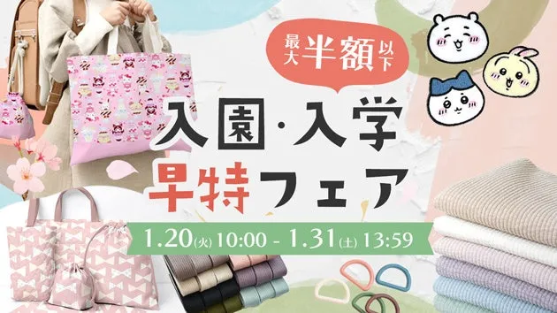 特集ページでは、子どもたちに人気のキャラクター生地や、レッスンバッグの表地として多くの支持を受けているヌビやキルティング素材、さらにワッペンや副資材も掲載されています。これにより、入学・入園準備に必要なアイテムを簡単に見つけることができます。