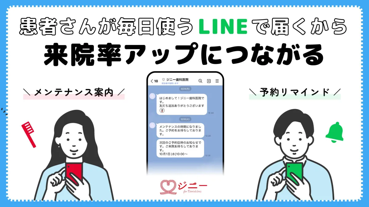 これまではSMS、メール、あるいは専用アプリを通じて、患者様に対して予約リマインドやメンテナンス案内が送信されてきた。しかし、多くの人が日常的に使用しているLINEを活用することで、その利便性が大きく向上することが期待されている。具体的には、予約確認や注意事項がLINEを通じて送信されることで、患者様が見逃しにくくなり、結果的に予約忘れを減少させることができる。