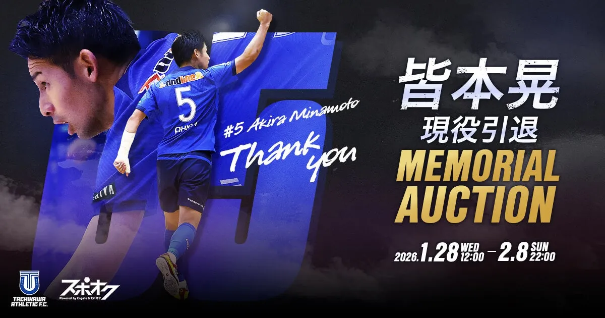 このたび、立川アスレティックFCは、皆本晃選手の功績を称える特別なメモリアルオークションを開催します。このオークションは、皆本選手の引退を記念しており、選手が携わった名シーンや思い出と共に、ファンの皆様にとってかけがえのない機会になることでしょう。実施は2026年1月28日から2月8日まで行われます。