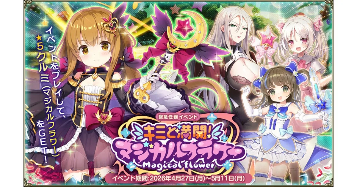 新イベント「キミと満開!マジカルフラワー」は、2026年4月27日(月)のメンテナンス後から始まり、2026年5月11日メンテナンス前までの期間限定の内容です。このチャンスを逃さず、ぜひ参加してください!