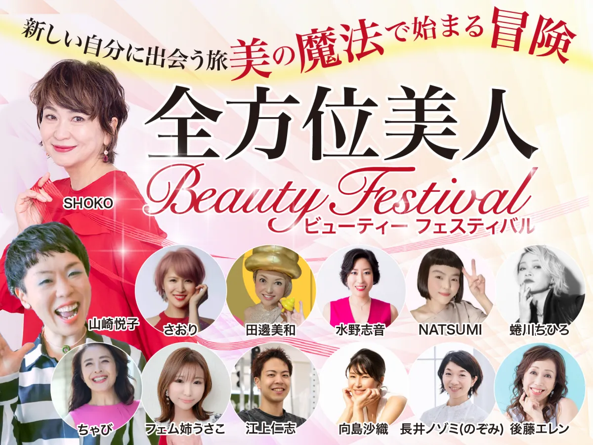 「全方位美人Beautyフェスティバル2024」は、40~60代女性の美と健康をサポートする、充実したイベントです。この機会に、新しい自分に出会い、より輝く人生を手に入れましょう。