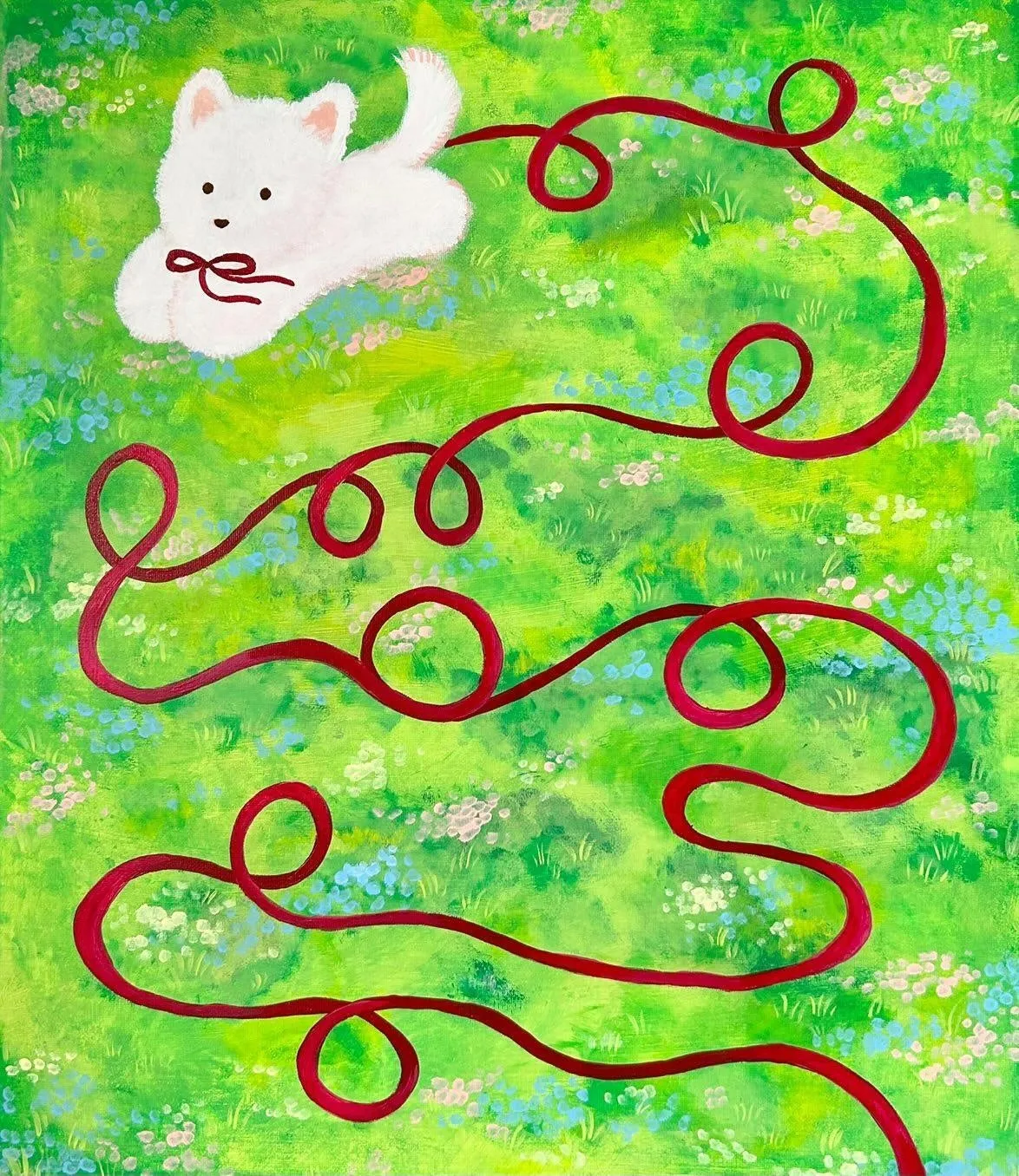 ユーリは、ピースワンコ・ジャパンのジャーナル「PeaceなWankoたち」に登場する、保護犬とその新しい家族の物語から着想を得て、特別なキャンバス作品を制作しました。グラフィカルで心温まるこれらの作品は、会期中に展示・販売され、売上の一部がピースワンコ・ジャパンに寄付されます。