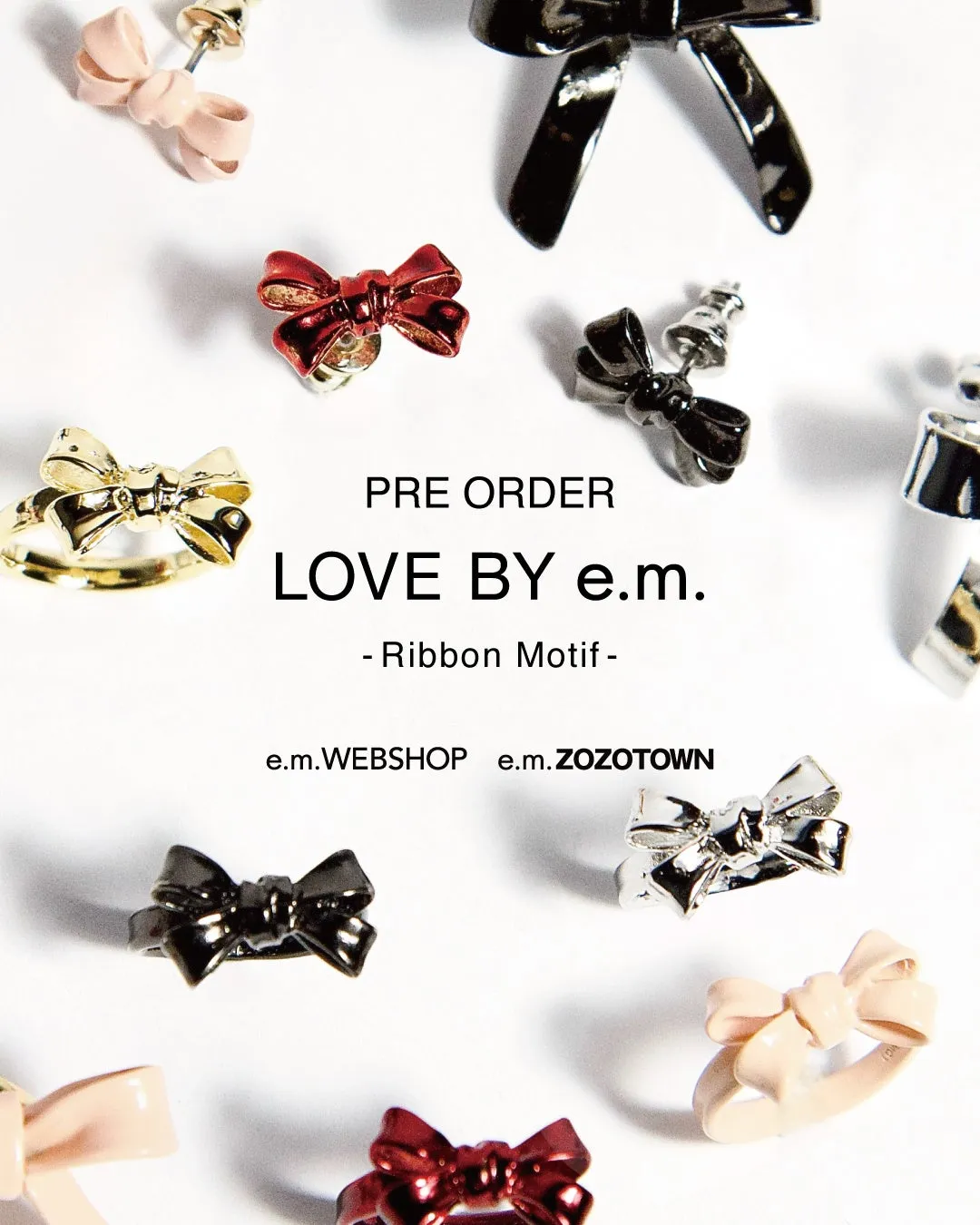 「LOVE BY e.m. リボンジュエリー予約会」は、e.m. WEBSHOPで4月17日から21日まで、e.m.zozotownでは4月17日から23日まで開催されます。これにより、消費者は新色のリボンジュエリーをいち早く手に入れるチャンスがあります。