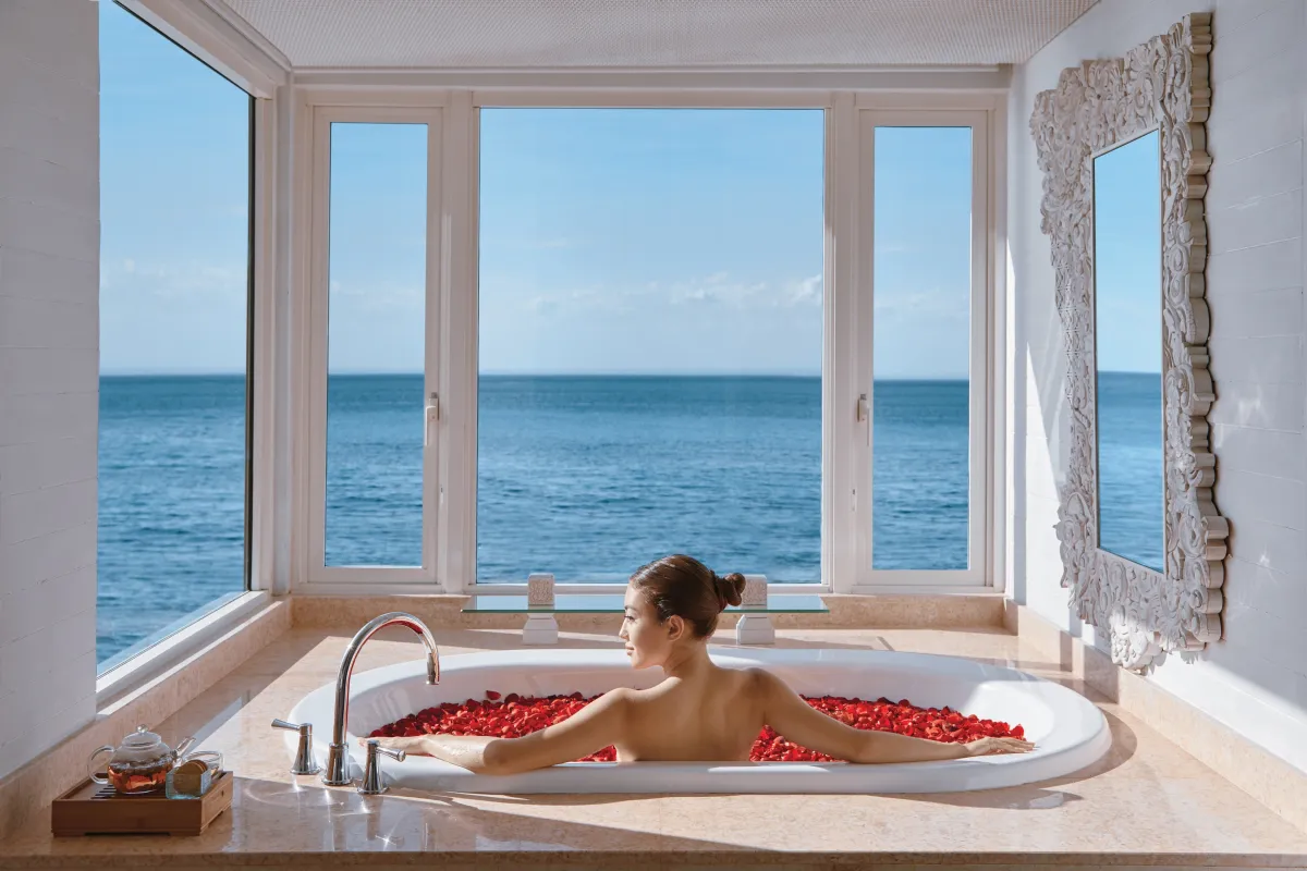 究極のリラクゼーションを求める方にお勧めなのが、波間に浮かぶ岩の上に設置されたスパ オン ザ ロックです。ここでは、贅沢なセラピーと壮大な海の眺めを楽しむことができ、至福のひとときを提供します。さまざまな療法や施術がありますが、すべてがゲストのニーズに合わせて設計されています。