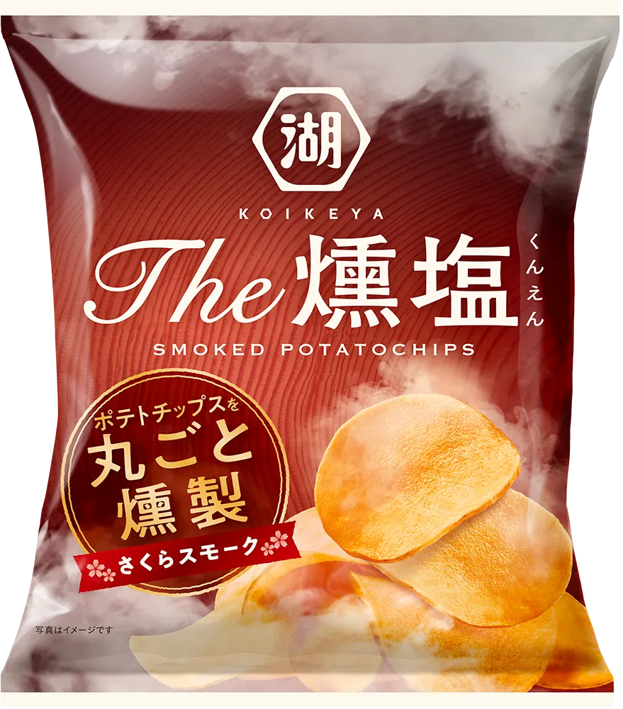 「KOIKEYA The燻塩」シリーズは、2022年に登場して以来、毎回発売と同時に完売するほどの人気を誇っており、その理由は本格的な燻製香と、厳選された素材にあります。厚切りの国産じゃがいもを使用し、シンプルに塩で味付けを施したこのポテトチップスは、東北地方の「大山桜」のスモークチップでじっくりと燻製されています。