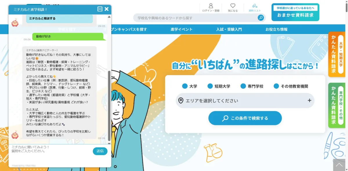 進学ポータルサイト「さんぽう進学ネット」に新機能「志望校マッチングAI ミチカル」が導入され、今話題になっています。このサービスは、多感な高校生の進路選びをサポートし、「何を学びたいかが分からない」と悩む彼らに対して新たな選択肢を提唱します。