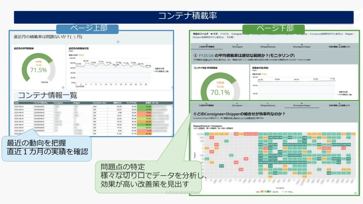 港や運送コスト、リードタイムなどの情報を一つのダッシュボードにまとめることで、出荷の効率を実際に数値で把握し、改善策を見出すことができました。これにより、コスト削減も進めています。