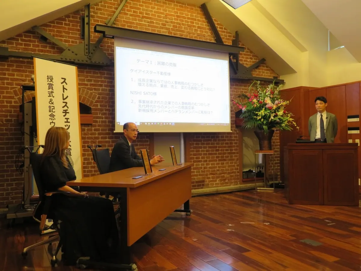 2024年7月25日には、ストレスチェック大賞の授賞式及び記念ウェビナーが開催され、当社からは総務部兼人事部の上席部長である青栁が登壇しました。ウェビナーでは「誰もがイキイキと働く職場のメンタルヘルス」をテーマとして、他の受賞企業とのトークセッションが行われ、企業同士の知見を共有し合う貴重な機会となりました。