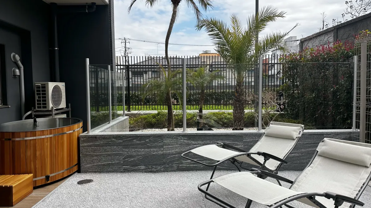 外気浴エリアには、リラックス効果を高めるために植栽が配置されており、自然を感じながら日常を忘れるひとときを楽しめる工夫もされています。また、サウナ直後の導線には藻をモチーフにしたインテリアが施され、特別な体験を提供しています。これら全ての工夫により、サウナが持つ本来的な癒しの力を存分に堪能できることを目指しています。