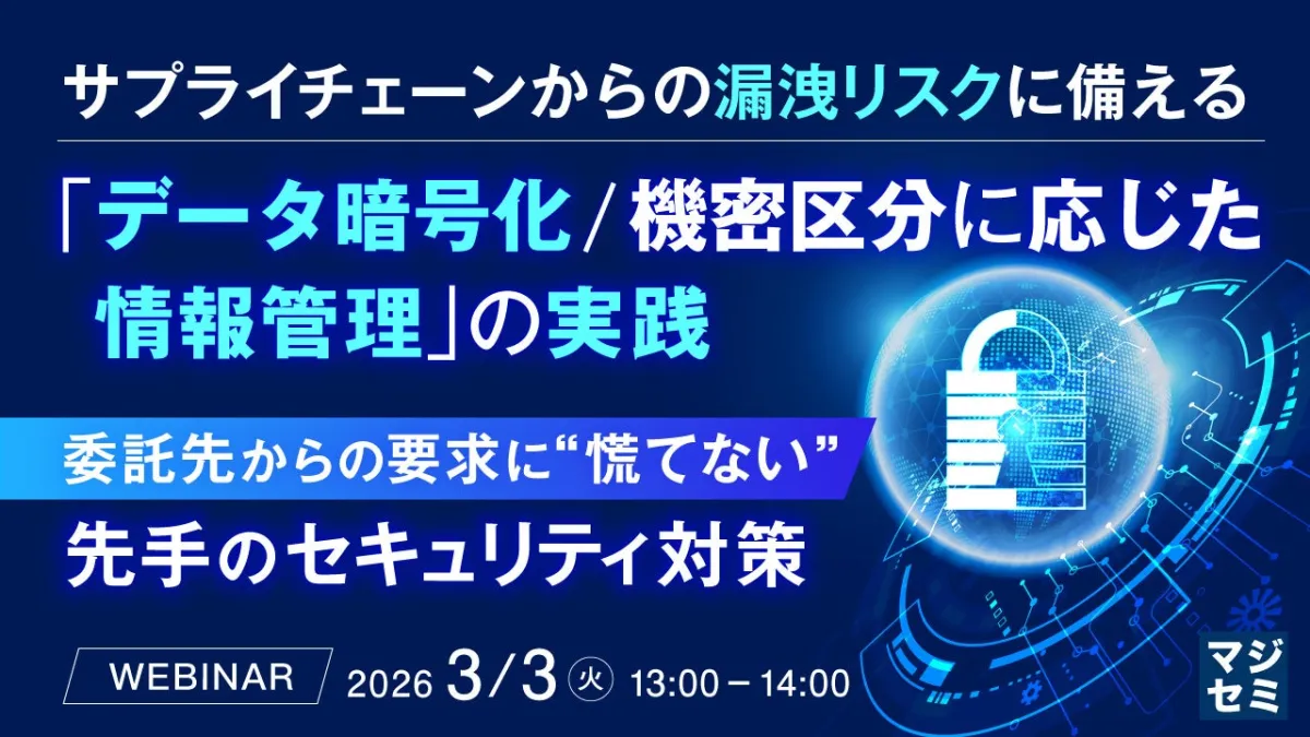 現在、企業にとってデータの管理は極めて重要な課題となっています。個人情報保護や設計データの安全な取り扱いが求められる中、企業は取引を継続するために適切な情報管理体制を整える必要があります。本ウェビナーでは、その解決策として「データ暗号化」と「機密区分に応じた情報管理」の実践をテーマにしています。