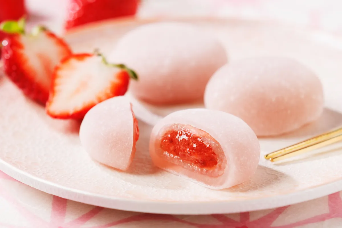 このいちご餅の特徴は何と言ってもその見た目。淡いピンク色のお餅に包まれた中には、甘酸っぱい苺ソースとクリーミーな苺餡がぎっしり詰まっており、春の空気を感じるような味わいが広がります。苺の酸味と餡の甘さが絶妙に調和し、一口食べるごとに心が躍るような幸福感をもたらします。