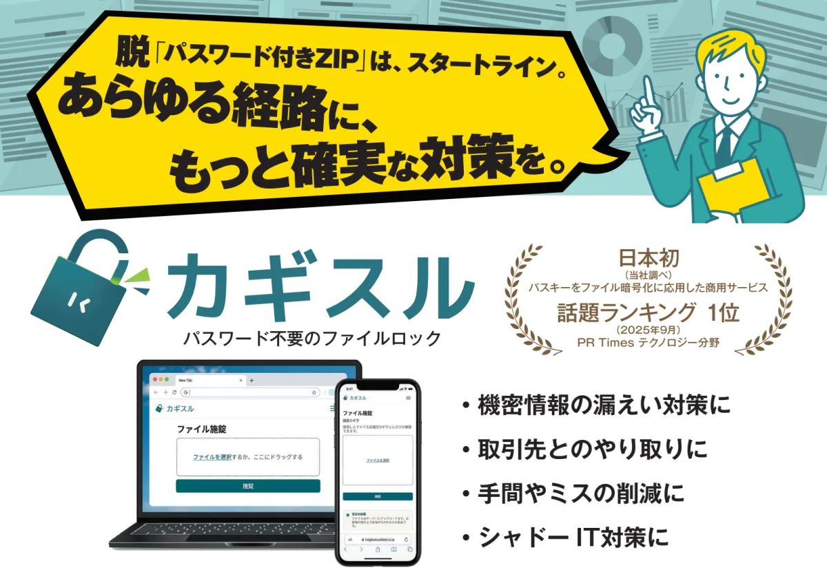 カギスルは、企業が日々向き合うファイルセキュリティの新たな選択肢となり得るサービスです。企業の情報管理をより一層強化していくことが期待されます。