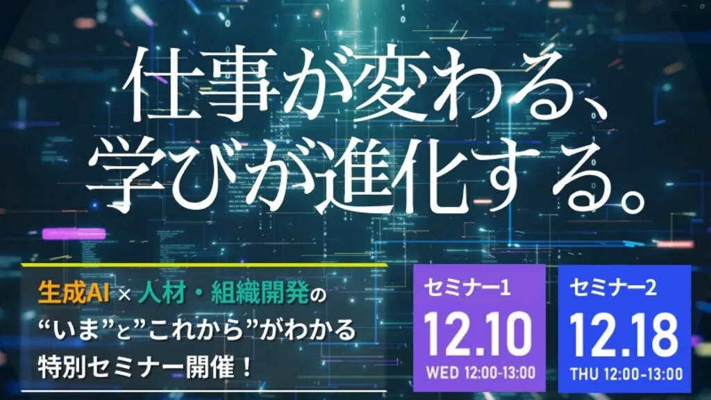MBK Wellness株式会社サイコム・ブレインズは、2025年12月10日(水)と12月18日(木)の二日間にわたり、生成AIと人材・組織開発をテーマにしたオンライン特別セミナーを開催します。このセミナーでは、生成AIがどのように企業の人材育成や組織形成に寄与するのか、その最新のトレンドと将来展望について深掘りします。