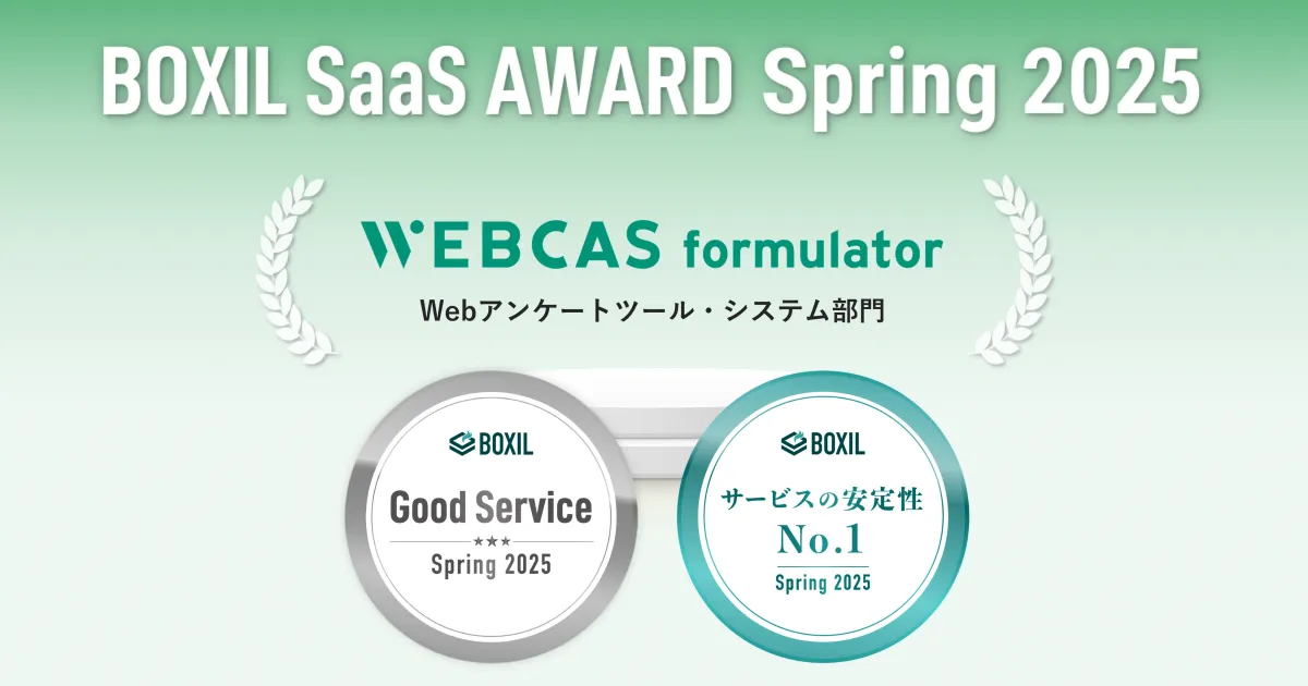 アンケート・フォーム作成システム「WEBCAS formulator」が、スマートキャンプが主催する「BOXIL SaaS AWARD Spring 2025」で優れたサービスとして評価されました。当社は、企業や団体のカスタマーエクスペリエンス(CX)の向上を支援するために、数々の業務を展開しています。特に、今回の受賞では「Good Service」にも選出され、さらには「サービスの安定性No.1」という称号も獲得しました。これは、顧客から寄せられた高評価の口コミの結果として評価されたものです。