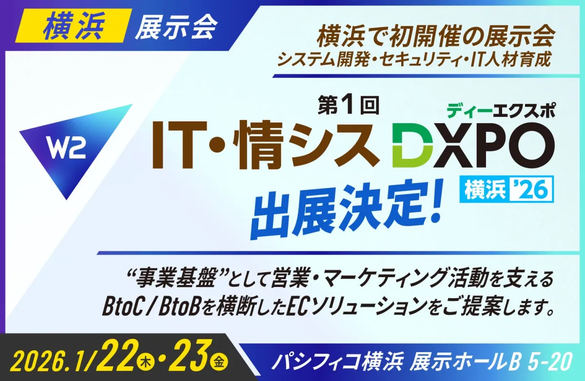 2026年1月22日から23日の間、横浜のパシフィコで開催される「第1回 営業・マーケDXPO横浜’26」に、ECソリューションのリーダーであるW2株式会社が出展することが決定しました。これにより、営業およびマーケティングのデジタルトランスフォーメーション(DX)に関する新しいアプローチを披露します。