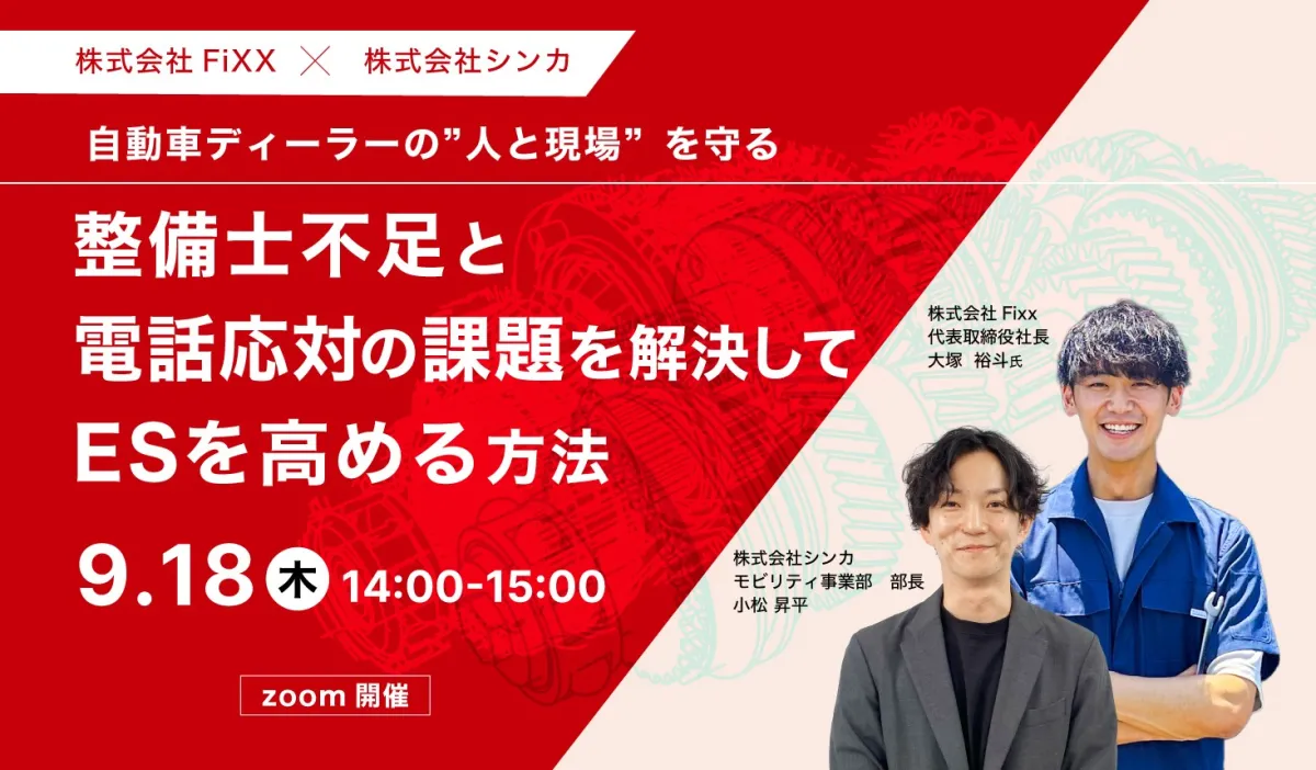 このような背景を受けて、株式会社シンカと株式会社Fixxは、共催セミナー「自動車ディーラーの“人と現場”を守る」を開催する運びとなりました。このセミナーでは、整備士不足や電話応対の効率化に関して、具体的な解決策を提示することを目的としています。