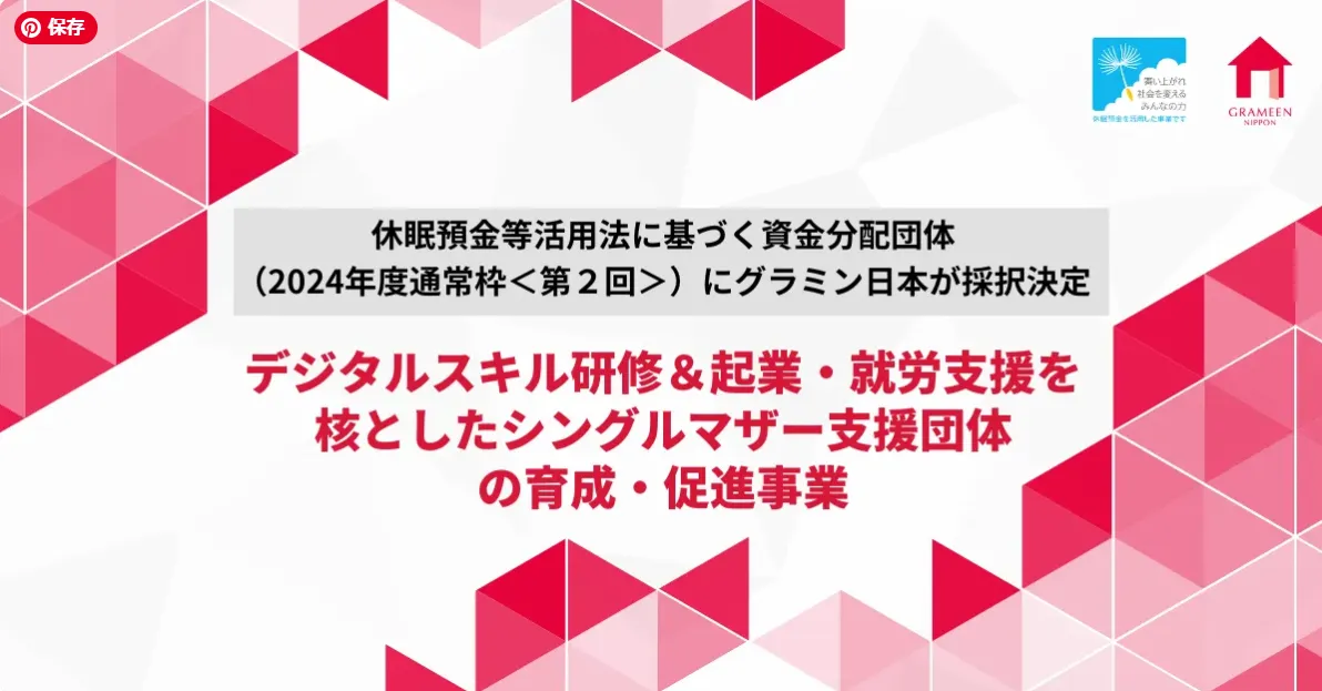 一般社団法人グラミン日本が、2024年度通常枠の休眠預金等活用法に基づく資金分配団体に選定されました。この度の採択により、グラミン日本は過去に続き3度目となる助成金を得ることが決まり、助成予定額は1.78億円です。