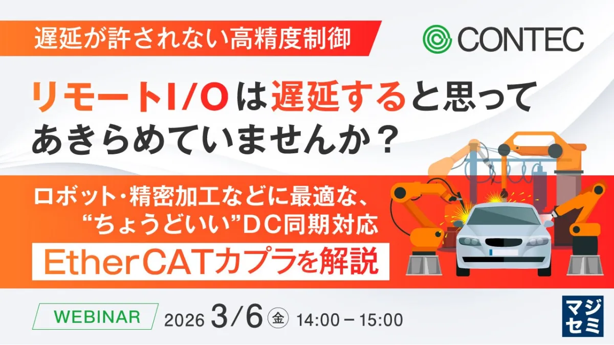 本ウェビナーでは、遅延が許されない高精度制御を実現するための具体的な手法を紹介します。特に「EtherCAT対応 CONPROSYS® nanoシリーズ」に焦点を当てて解説します。この製品はDC同期に対応しており、誤差1µs以内で高精度なI/O同期を実現します。また、必要最小限の構成でシンプルかつ効果的に接続できるのも大きな魅力です。