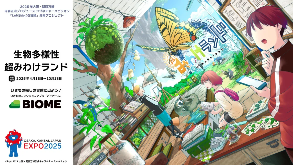 2025年4月14日、大阪・関西万博のシグネチャーパビリオン「いのちめぐる冒険」内にて、「生物多様性超みわけランド」がスタートします。このイベントは、株式会社バイオームと河森正治プロデューサーをはじめとする協賛企業が共同で開発したもので、楽しみながら生物多様性を学ぶアプリイベントです。