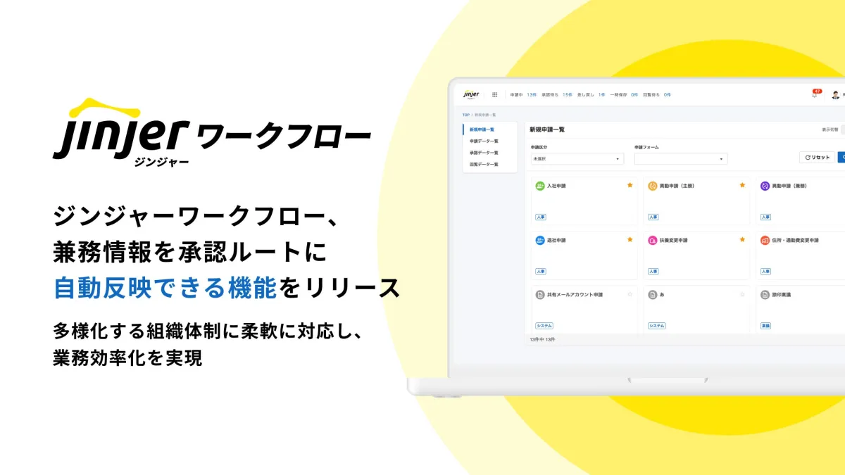 株式会社jinjerが提供するクラウド型人事労務システム「ジンジャー」は、最近ワークフローシステム「ジンジャーワークフロー」に新しい機能を追加しました。この機能は、従業員の兼務情報を承認ルートに自動的に反映させることができ、これにより申請業務の効率が飛躍的に向上します。