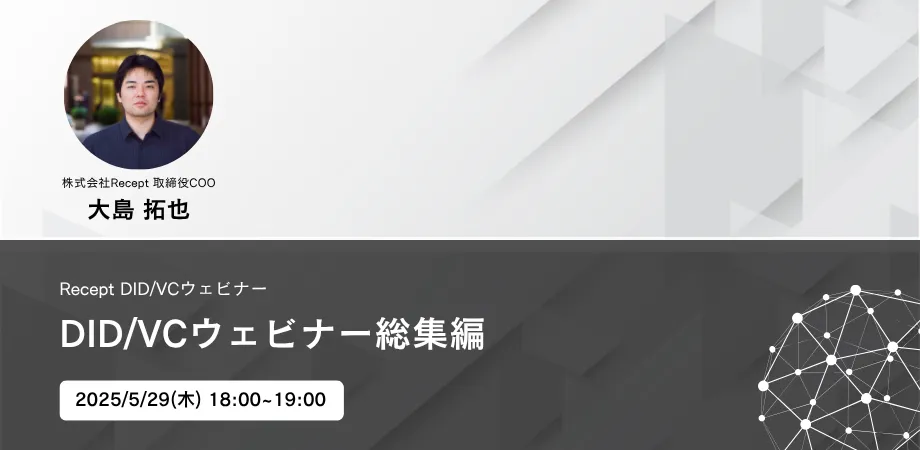 本イベントでは、株式会社ReceptのCOOを務める大島氏が登壇し、DID/VCに関する知識を深めるためのプログラムが用意されています。このウェビナーは、過去に実施された3回のウェビナーをまとめた内容で構成されており、これまでのセッションを逃した方々にとっても有益な機会となります。プログラムには以下の内容が含まれます。