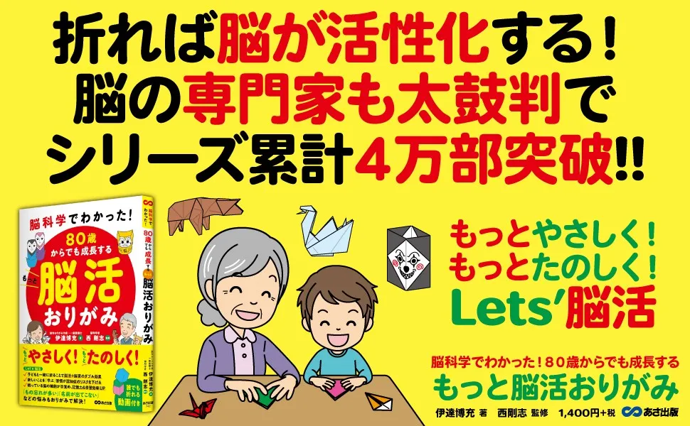2025年2月18日、株式会社あさ出版から新たに刊行される書籍『脳科学でわかった! 80歳からでも成長するもっと脳活おりがみ』は、高齢者の脳活に力を入れています。この本は、現役建築士であり創作おりがみ作家でもある伊達博充氏が著し、脳科学の専門家西剛志氏が監修を行っています。彼らの技術を基に、楽しくおりがみを折ることで脳を活性化し、認知機能の低下を防ぐさまざまな方法が紹介されています。