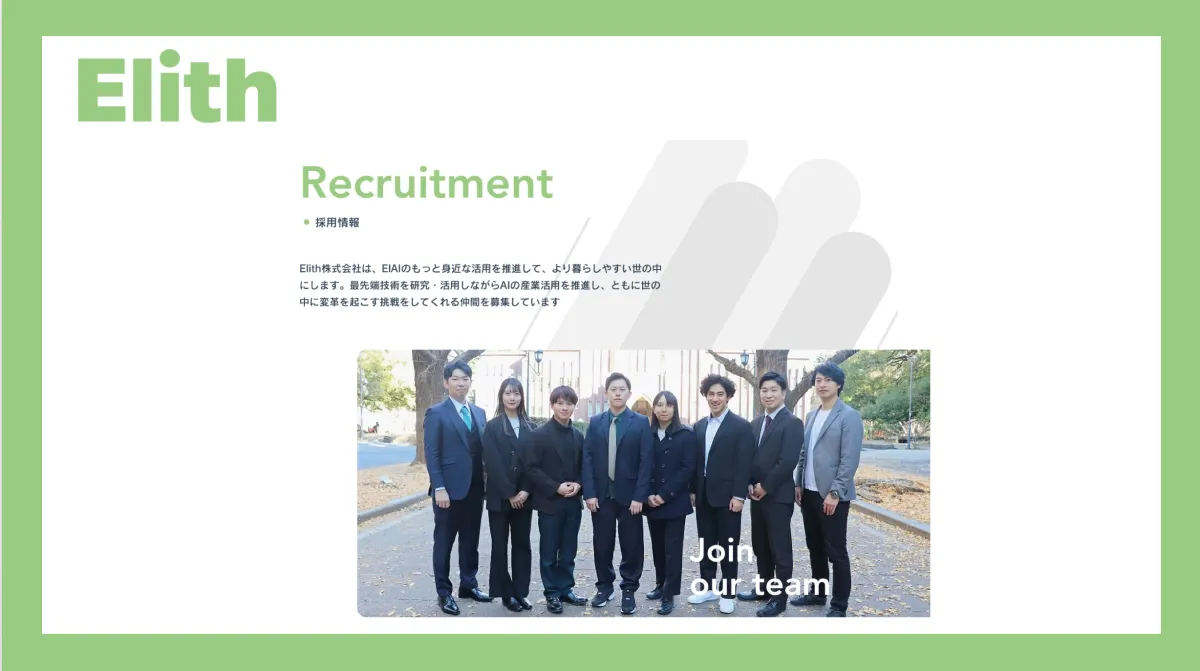 株式会社Elithは、この度採用情報ページをリニューアルしました。新しいページでは、同社がどのような仲間を求めているのか、また将来に向けたビジョンをよりリアルに伝えることを目指しています。ユーザーにとっては、企業文化や働き方を深く理解できる構成に生まれ変わったことで、応募の際に心強いサポートとなるでしょう。