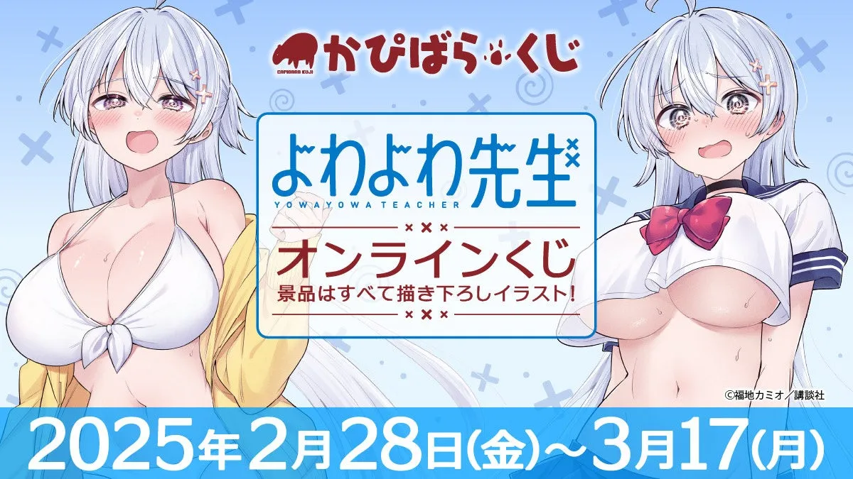 合同会社かぴばらが提供するオンラインくじサービス「かぴばらくじ」が、成功を収めること間違いなしの新たな試みを発表しました。それは、人気漫画『よわよわ先生』(著:福地カミオ)の初のオンラインくじ。国民的な人気を誇るこの作品のファンにとって、待望のイベントです。