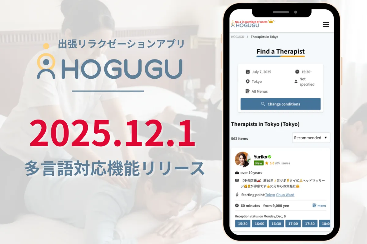 出張リラクゼーションサービス「HOGUGU」多言語対応機能リリース