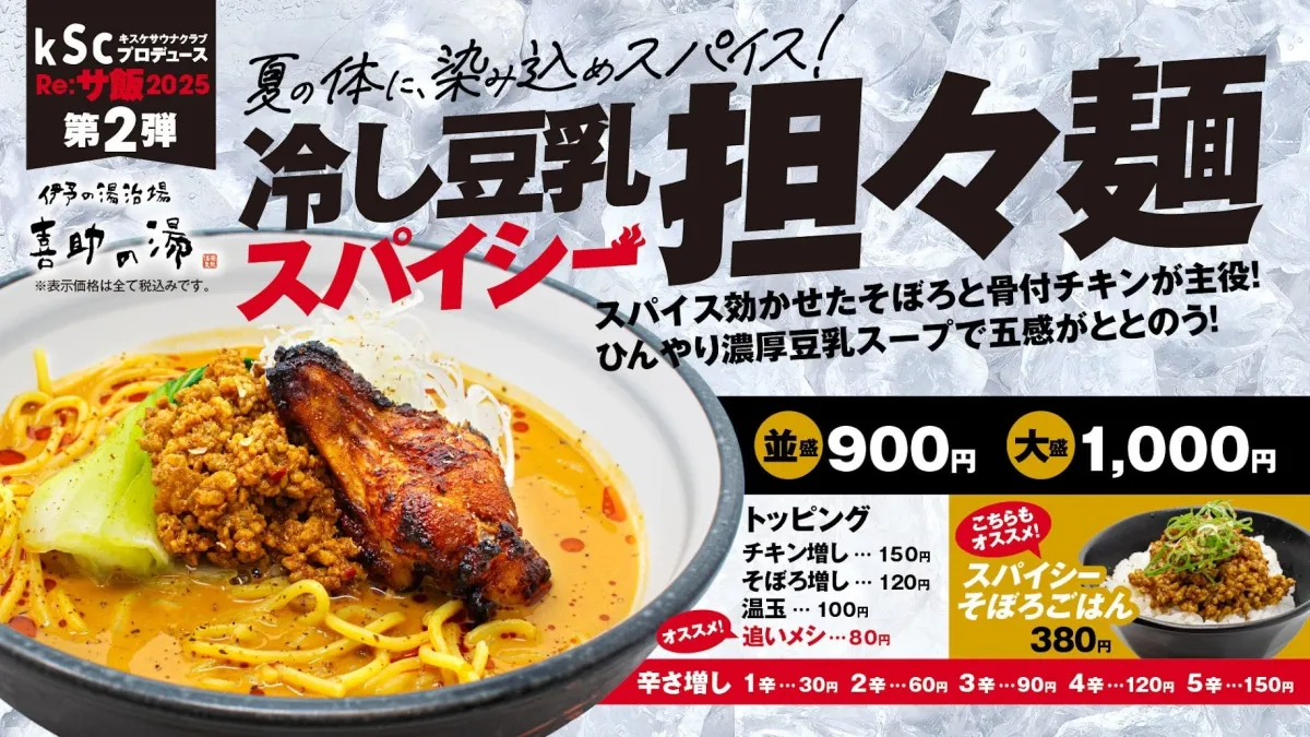 愛媛県松山市にある温浴施設「伊予の湯治場 喜助の湯」が、2025年7月1日からサウナ愛好者向けに新たな食体験を提供します。その名も「濃厚豆乳冷やしスパイシー担々麺」です。この一杯は、サウナ後の食欲を引き立て、心も体も癒やさる魅力たっぷりのメニューです。