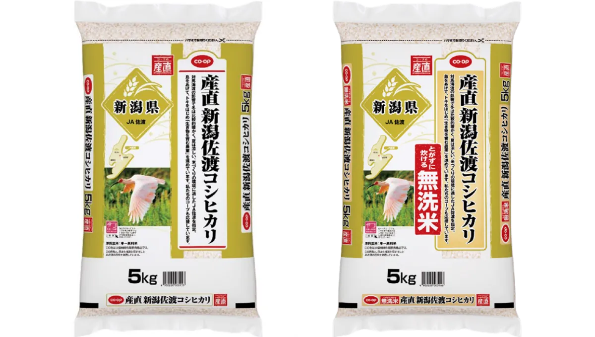 今回導入される新たなパッケージは、コープデリ生活協同組合連合会、生活協同組合ユーコープ、および生活協同組合連合会コープきんき事業連合に加盟する各生協で販売される『CO・OP新潟佐渡コシヒカリ5kg(普通精米・無洗米)』などが含まれます。この米袋はエコマーク認定を受けており、環境への配慮が一目で分かるデザインとなっています。
