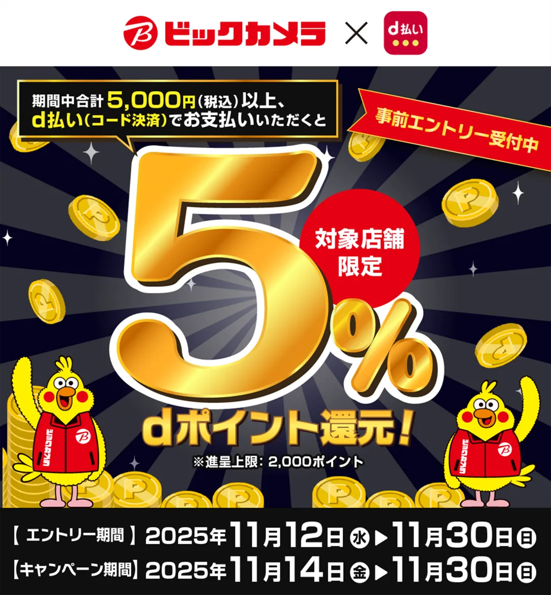 現在、株式会社NTTドコモは、池袋地区のビックカメラにて特別なキャンペーンを開催します。「池袋地区店舗限定 d払い5%還元キャンペーン」は、2025年11月14日から11月30日までの期間、特定の店舗で実施されます。このキャンペーンの目玉は、対象のビックカメラ店舗で「d払い」で5,000円(税込)以上を支払うと、支払額の5%に相当するdポイントが進呈されるという点です。