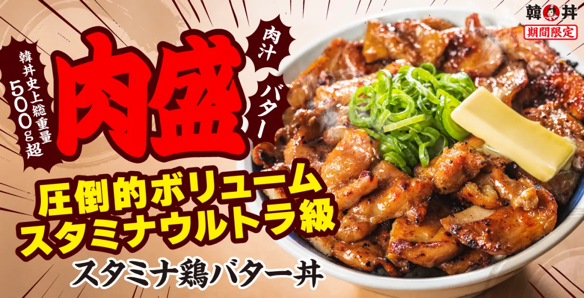 株式会社やる気が運営する「韓丼」が、2026年4月28日から新たに「スタミナ鶏バター丼」を期間限定で発売します。私たちの生活の中で、がっつり食べたいという欲求をまさに満たしてくれるこの一杯は、韓丼史上最大のボリュームを誇る「ウルトラMAX丼」として登場します。並盛でもその総重量は500gを超え、大盛りはさらに驚きのメガ盛りサイズが用意されています。これにより、圧倒的な満足感を得られること間違いなしです。
