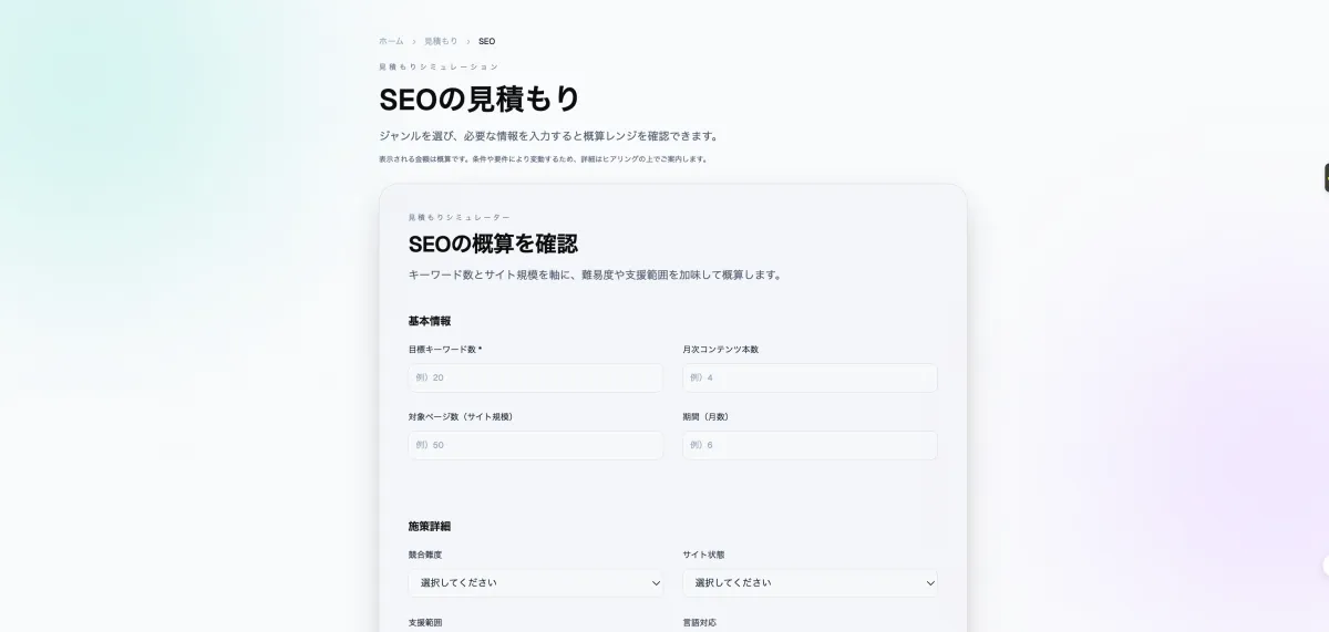 これまでのSEO施策においては、ヒアリング後に提示される個別の見積もりが主流であり、予算感をつかむことが難しいとされていました。このツールは、そんな悩みを解決するための選択肢になるでしょう。