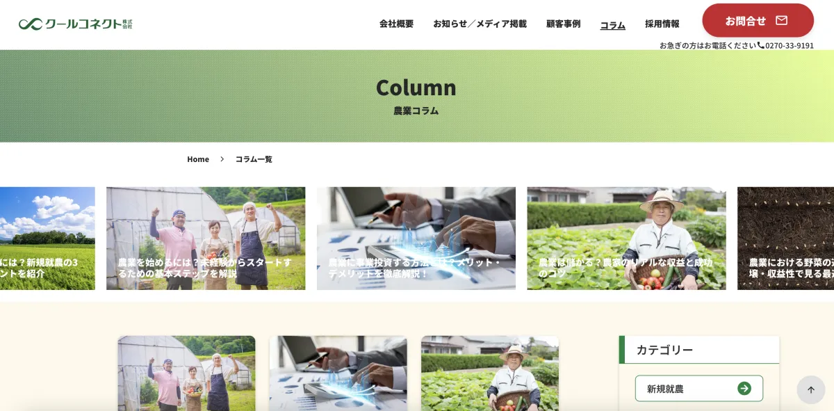 群馬県伊勢崎市に本社を構えるクールコネクト株式会社が、公式ウェブサイトに「農業コラム」を新たに開設したことを発表しました。このコラムページは、農業に興味がある個人や企業にとって有益な情報源となることを目的としています。