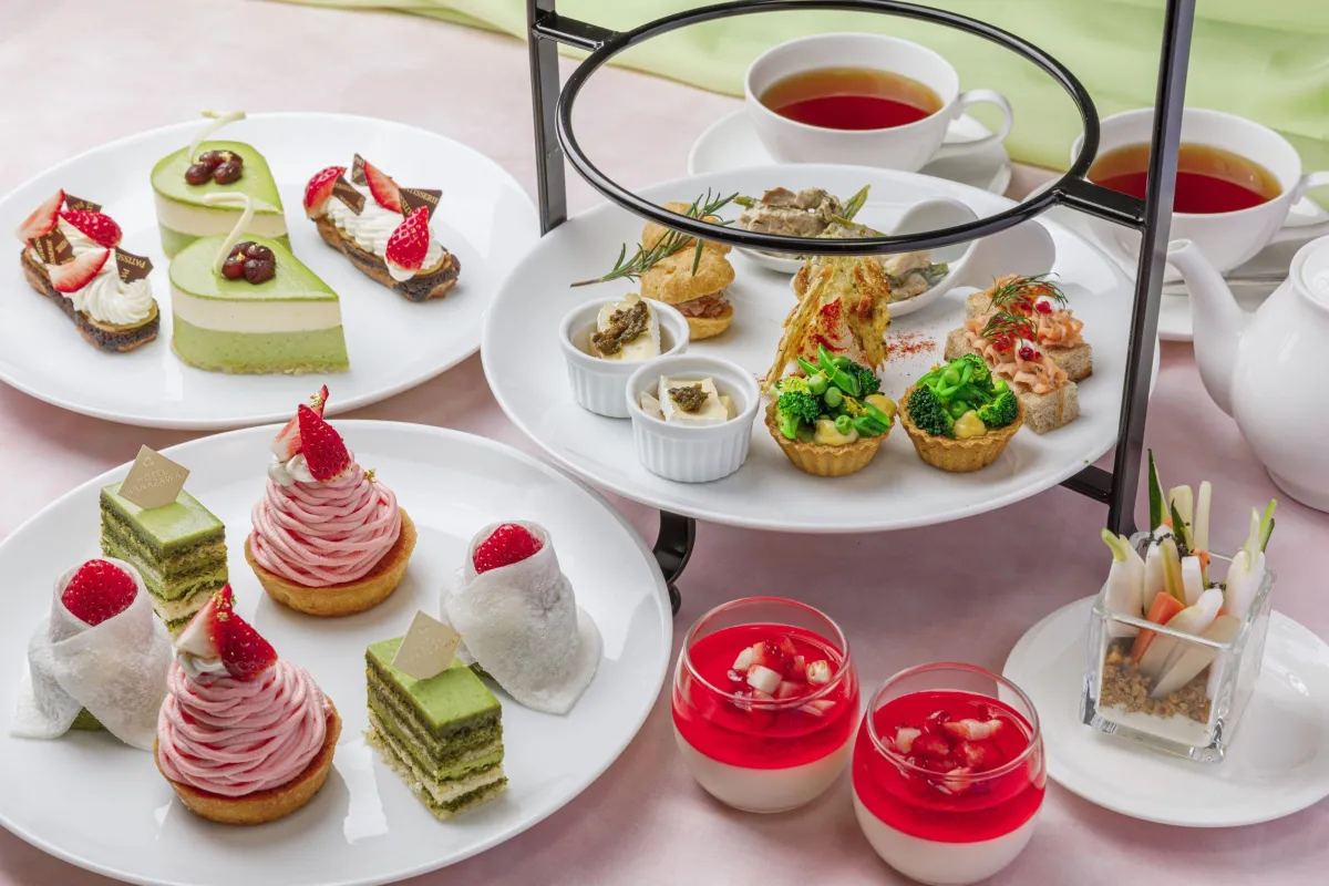 このアフタヌーンティーは、春の訪れを感じさせる、いちごと抹茶をテーマにしており、ホテルのパティシエやシェフが手掛けた美しいスイーツやセイボリーを楽しむことができます。