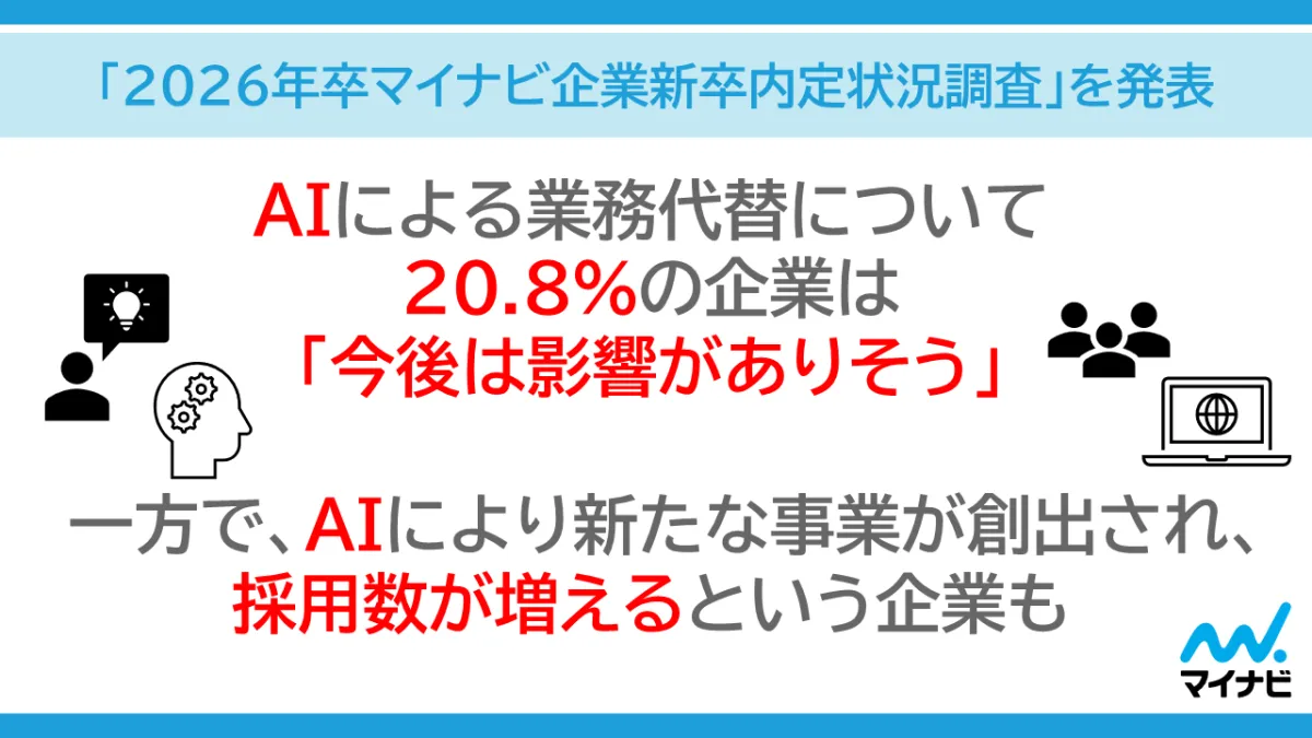 株式会社マイナビ(本社:東京都千代田区)が発表した「2026年卒マイナビ企業新卒内定状況調査」の結果が明らかになりました。今回はこの調査をもとに、各企業の採用意欲や新しい採用手法について考察していきます。