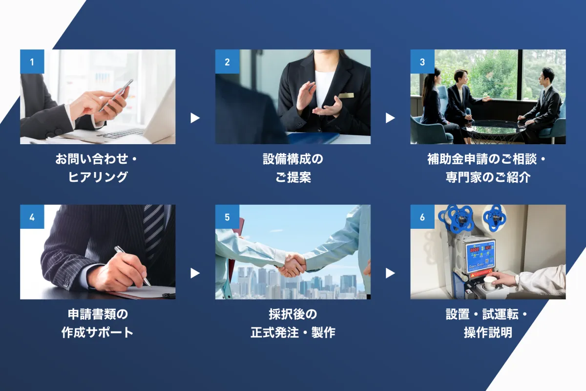設置・試運転・操作説明:現場での据付や、試運転を行い実際の操作説明を実施。