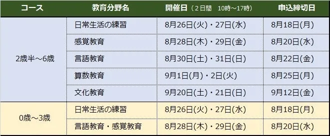 公益財団法人才能開発教育研究財団が主催するこの講座は、モンテッソーリ教育の知識を深めたい方に最適です。特に「モンテッソーリ教育を試してみたいが、どこから始めればよいのか分からない」と考えていた方にピッタリな内容です。講座は2023年8月26日から始まり、合計で7つの講座が用意されています。参加者はモンテッソーリ教育の基本を、深く、そして具体的に学ぶことができます。