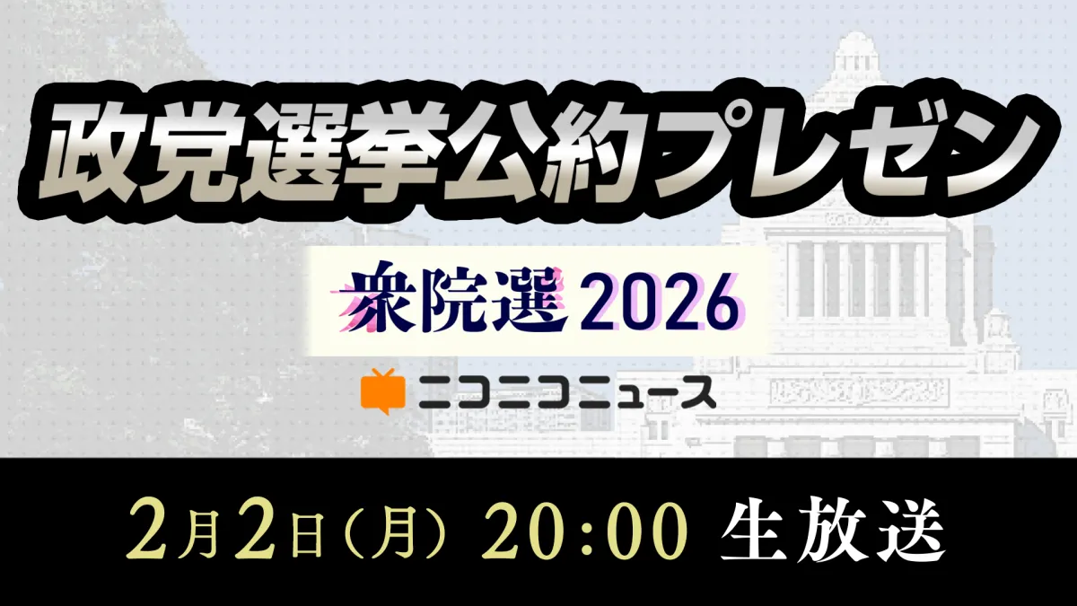 この特別企画「【衆院選2026】『選挙公約』11連発!政党代表者がプレゼン」は、2026年2月2日(月)20時00分から放送されます。放送は、笑顔や厳しい社会情勢を反映した多彩な公約が発表されるものと期待されています。視聴者は同日、ニコニコ生放送、ニコニコニュース公式YouTubeチャンネル、公式Xにてこの模様を視聴することができます。